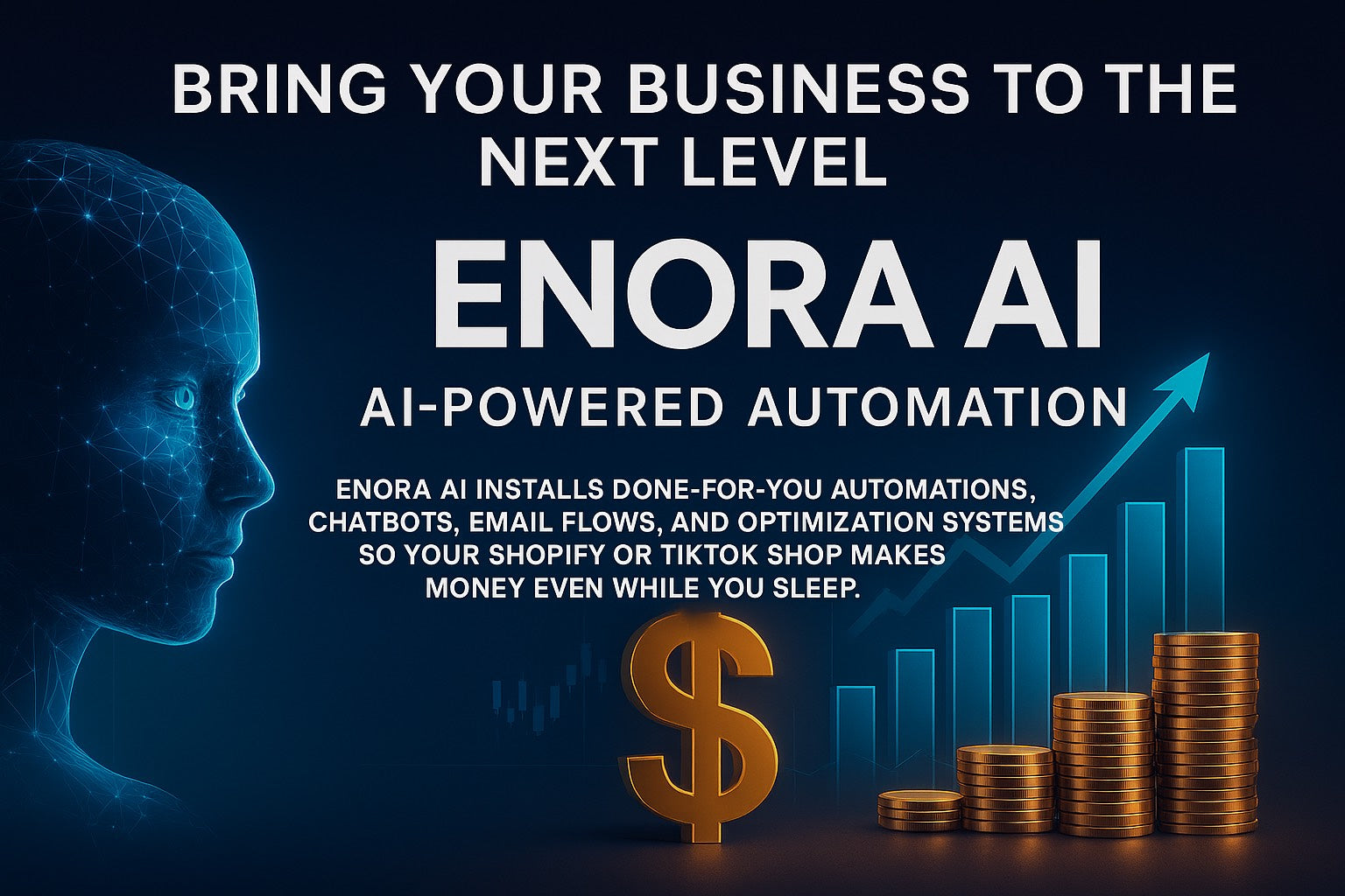 ENORA AI builds, automates, and optimizes your Shopify or Tiktok shop using advanced AI systems. Depending on your automation level, it handles store setup, product optimization, funnel building, customer support, email automation, and daily improvements.